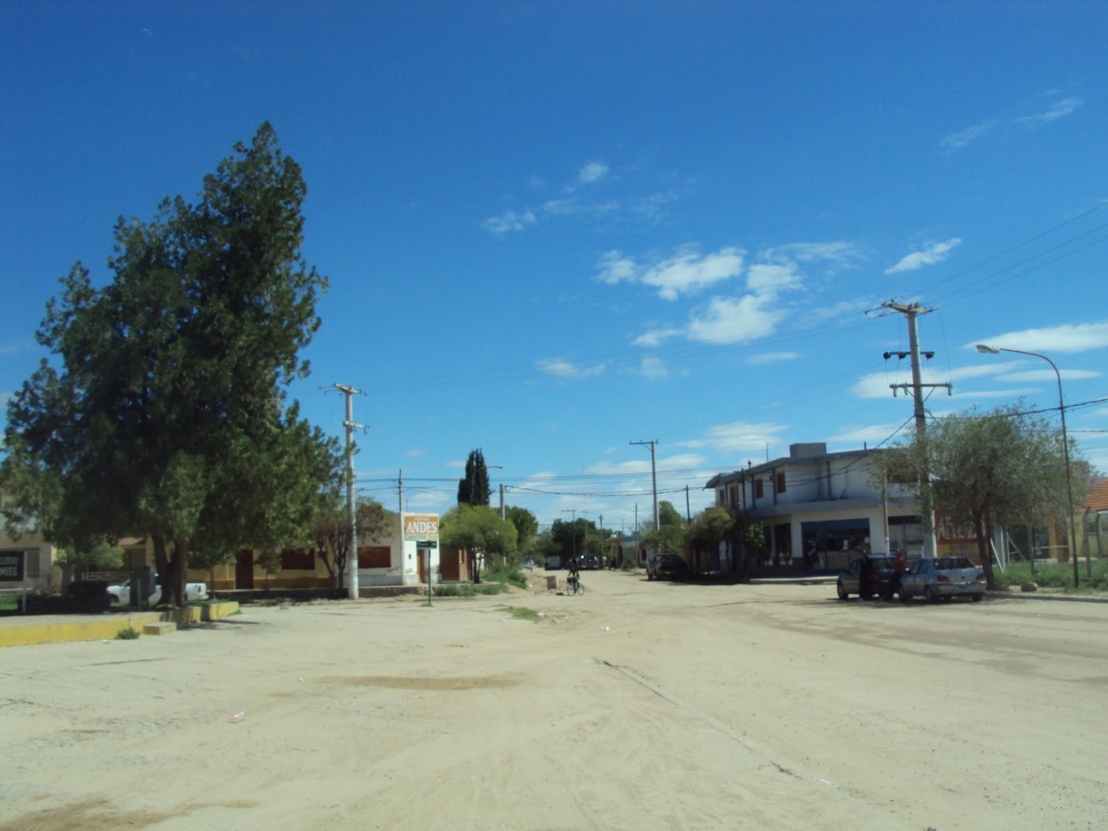 Lever tôt et départ à 8 h 15 de l’hôtel. Jens est navigateur et je conduis pour sortir de Córdoba. Très peu de circulation, dimanche matin, tôt. On trouve bien la route. La route monte dans la montagne. Et plusieurs villages sont manifestement des lieus de vacances ou de week-end: campings, hôtels et maisons de vacances à louer. Le paysage devient ”haut alpin”.Les formations rocheuses ressemblent à … Sognefjord! Pierres grises, très peu de terre. C’est plus humide qu’en bas et on voit des vaches et des chevaux. On croise un gaucho, à cheval, avec son fils sur un autre cheval. Très peu de maisons. Puis nous redescendons et la route devient de nouveau droite, droite. Bonne route. On roule bien, 110-120 km/h et des voitures nous passent, surtout quand on est sorti de la Province de Córdoba. La limite de vitesse est de 100 km/h. mais à la moindre intersection d’un chemin de terre elle descend à … 40! Nous passons une ville qui s’appelle Villa Dolores. On doit tourner à gauche mais on loupe le carrefour. On se renseigne et un chauffeur de camionnette nous indique la bonne route. Nous prenons une rue de terre dans la ville, croisons la rivière heureusement à sec et retombons sur nos pattes.